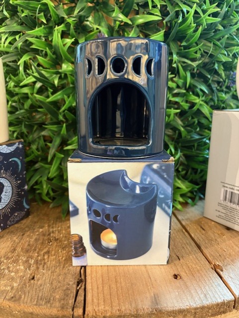 Small Oil burner with a crescent moon cut out pattern. Great for oils to fragrance your home.