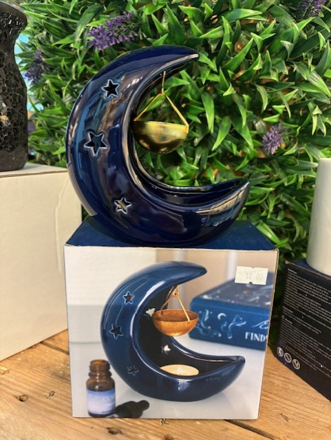 Blue moon shaped oil burner. Great for fragrance or essential oils to fragrance your home.