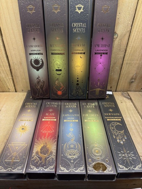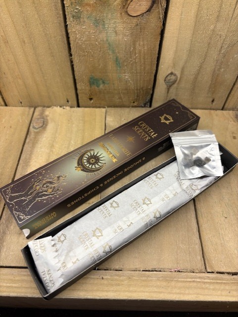 8 smudge sticks with crystal chips set in a beautiful box. Would make an ideal gift for any incense lover.